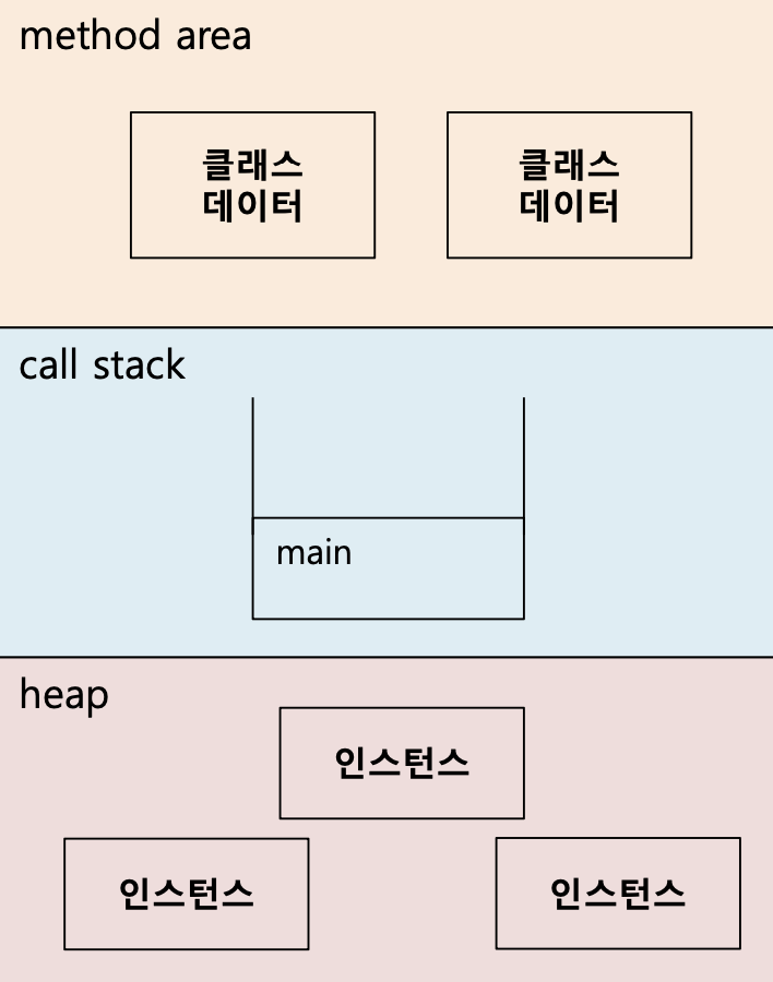 | 메서드 영역(Method Area) | 클래스 정보(클래스 데이터), 클래스 변수를 저장 |