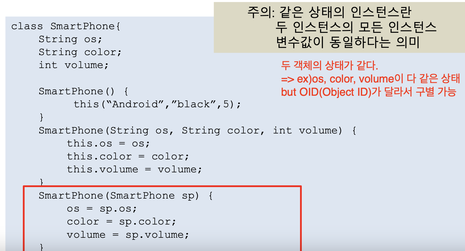 *생성자는 인스턴스를 생성하지 않음, 생성자는 인스턴스 변수들의 초기화만 함