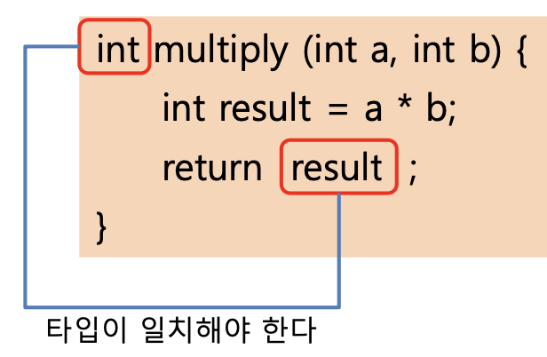 :메서드의 반환타입이 void가 아닌 경우, 구현부{} 안에 반드시 return 반환값이 반드시 포함되어야 함