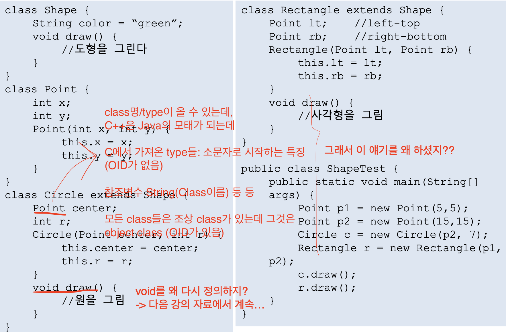 -의문점1: 왜 이미 상위 클래스인 Shape에서 정의된 void draw()를 하위 클래스들이 다시 정의하고 있을까?