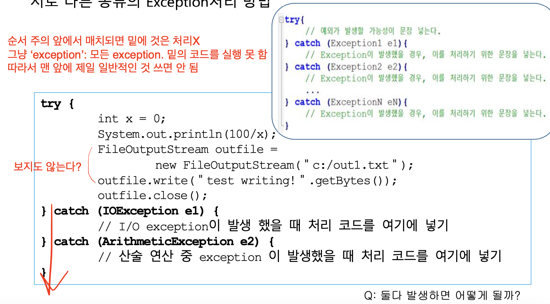 throws 옆에 써주는 것, catch 참조변수의 타입: Exception 클래스임