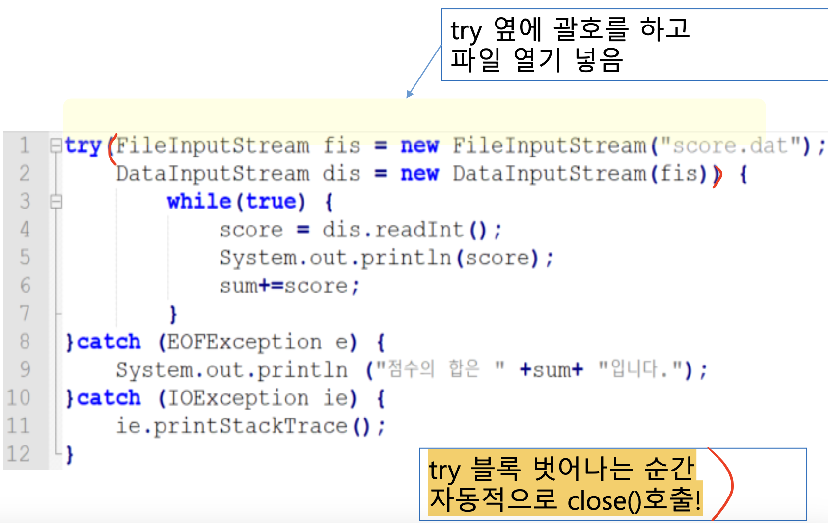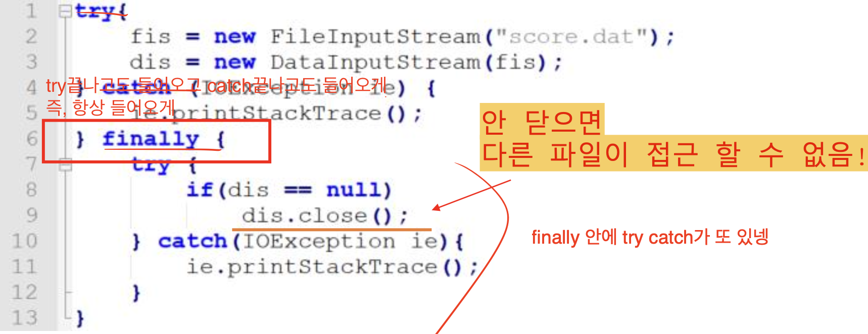 //예외가 발생했을 때 처리 코드를 여기에 넣기 ex.close