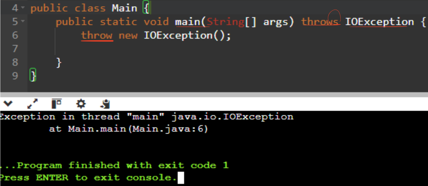 | 9. 파일과 예외처리 | 1. 파일 입출력 클래스 2. 파일 쓰는 법 3. 컴파일 오류를 없애는 방법 2가지 4. try-catch 더 알아보기 ㄴ4.1. ArithmeticException ㄴ4.2 try-catch문 실행순서 ㄴ여러 catch 문 5. 프로그램 오류 6. 예외 클래스 7. finally ㄴ7.1. finally ㄴ7.2.자원 자동 변환 9. throw |